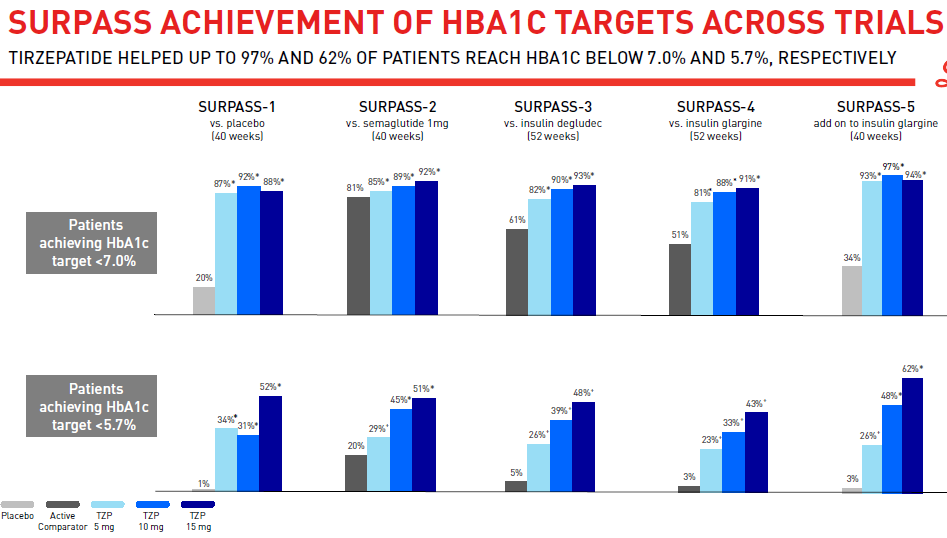 GLP-1受体激动剂近两年内即将超越胰岛素成为最大的降糖药品类,竞争则已经进入双靶点和多靶点时代。GLP-1R、GIPR、GCGR的组合成为竞争焦点,礼来在这一领域处于领先地位。现在礼来GLP-1R/GIPR双靶点激动剂Tirzepatide在三期临床中击败甘精胰岛素、索马鲁肽等,已经递交上市申请。